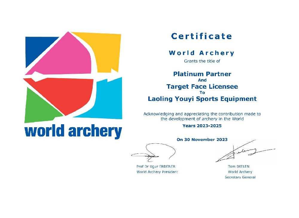 友誼體育將全力以赴,服務全國所有射箭比賽,服務國家隊、省市基層射箭隊等,提供優(yōu)質的射箭裝備和優(yōu)秀的賽事服務保障,為中國射箭事業(yè)的發(fā)展和推廣貢獻自己的力量。